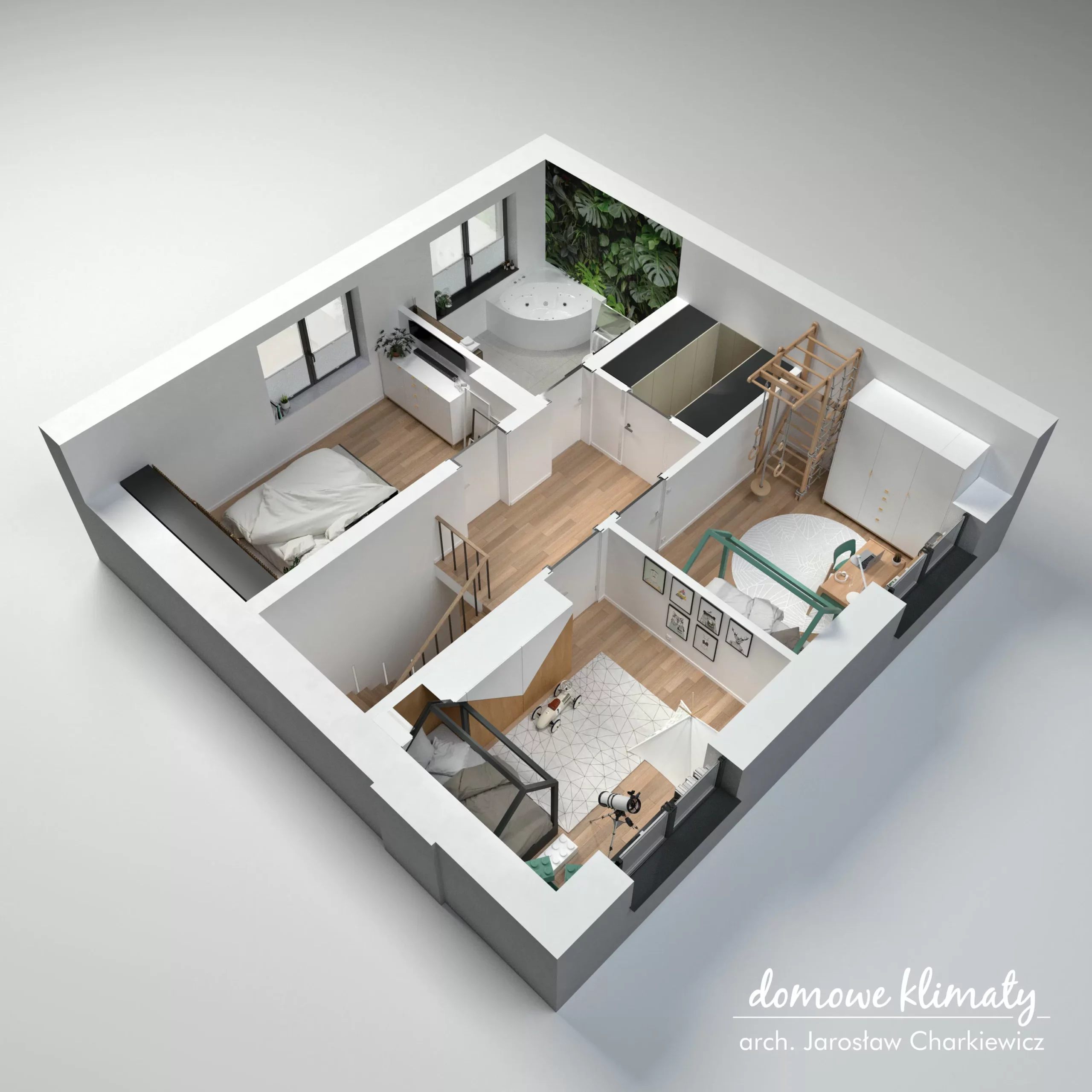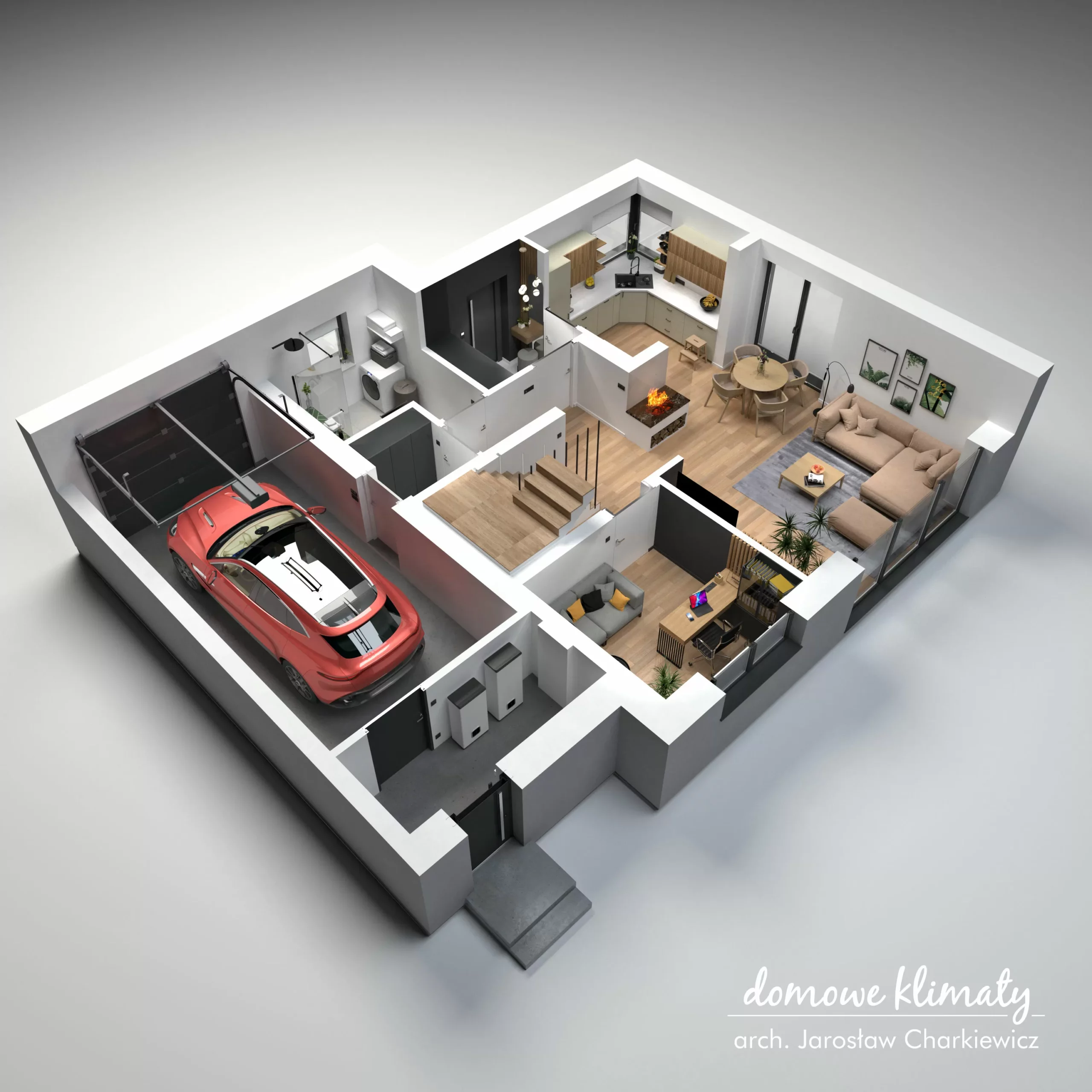 • funkcjonalny układ z wyraźnym podziałem na strefę dzienną i prywatną,