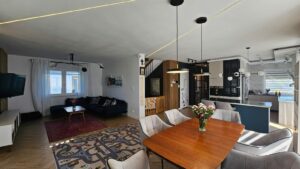 W najbliższym sąsiedztwie nieruchomości znajdują się domy jednorodzinne. Zaciszna okolica sprawia, że po ciężkim dniu w pracy można w pełni się zrelaksować. W pobliżu domu jest market, przedszkole i szkoła a do miasta jest zaledwie 15min samochodem.