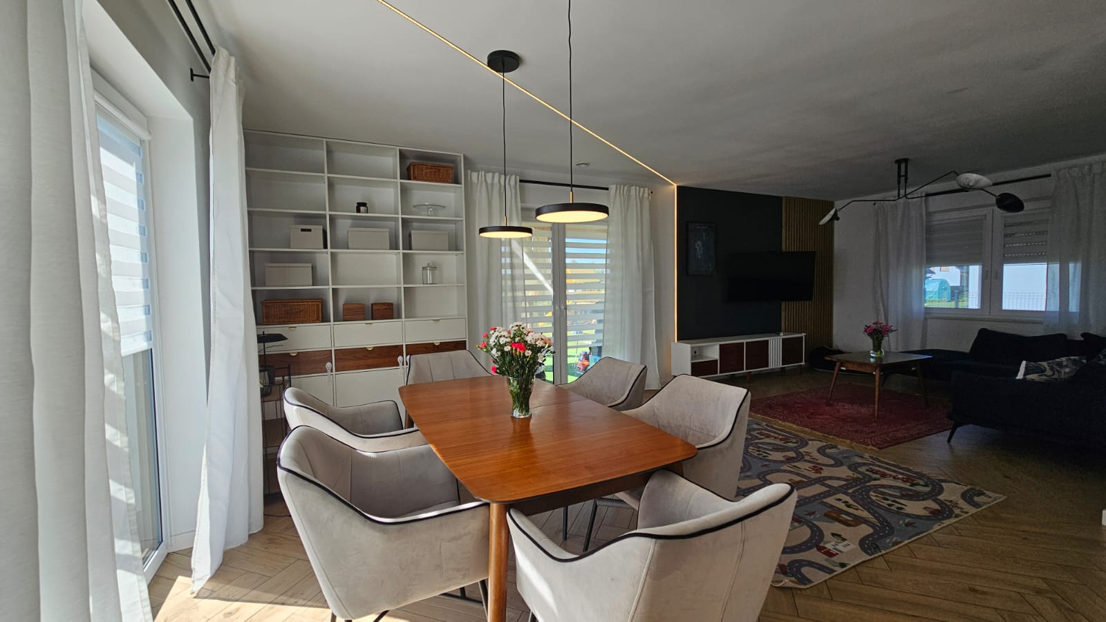 W najbliższym sąsiedztwie nieruchomości znajdują się domy jednorodzinne. Zaciszna okolica sprawia, że po ciężkim dniu w pracy można w pełni się zrelaksować. W pobliżu domu jest market, przedszkole i szkoła a do miasta jest zaledwie 15min samochodem.