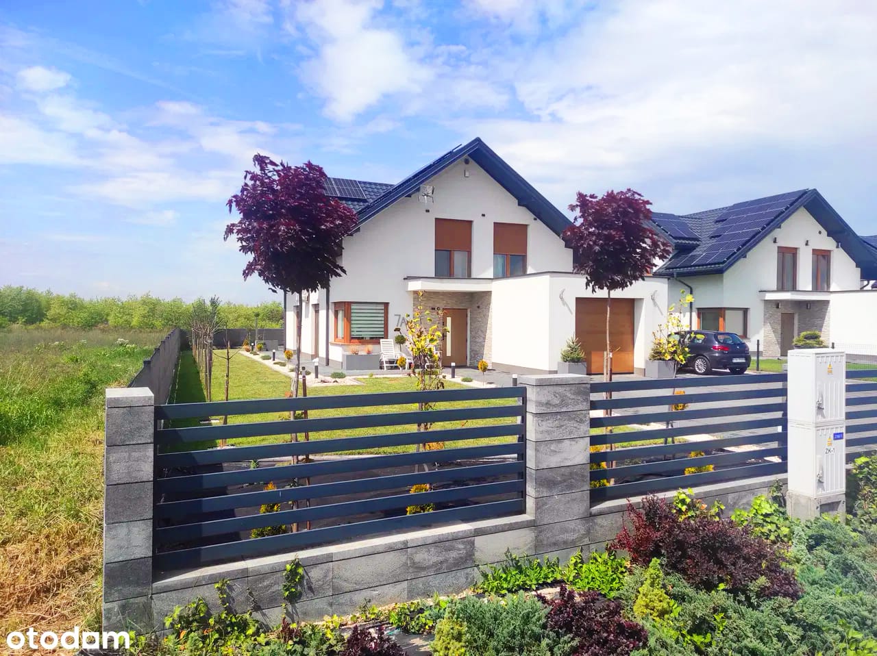 Dom jest wykonany nowoczesną technologią z pustaka max, dach pokryty blachodachówką na której zamontowana jest fotowoltaika o mocy 7KW. Do ogrzewania domu i wody zamontowano pompę ciepła. Na całej powierzchni domu mamy ogrzewanie podłogowe i rekuperację z centralą. Dodatkowo został zamontowany zmiękczacz wody i filtr centralny.
