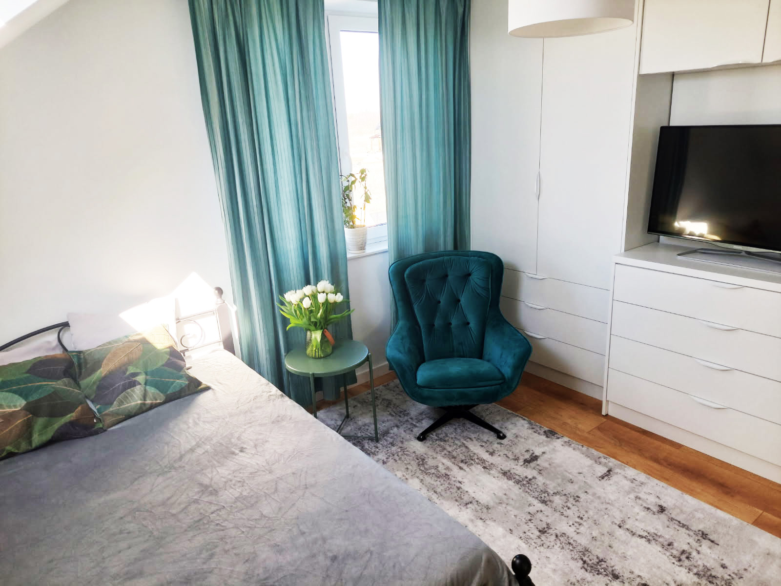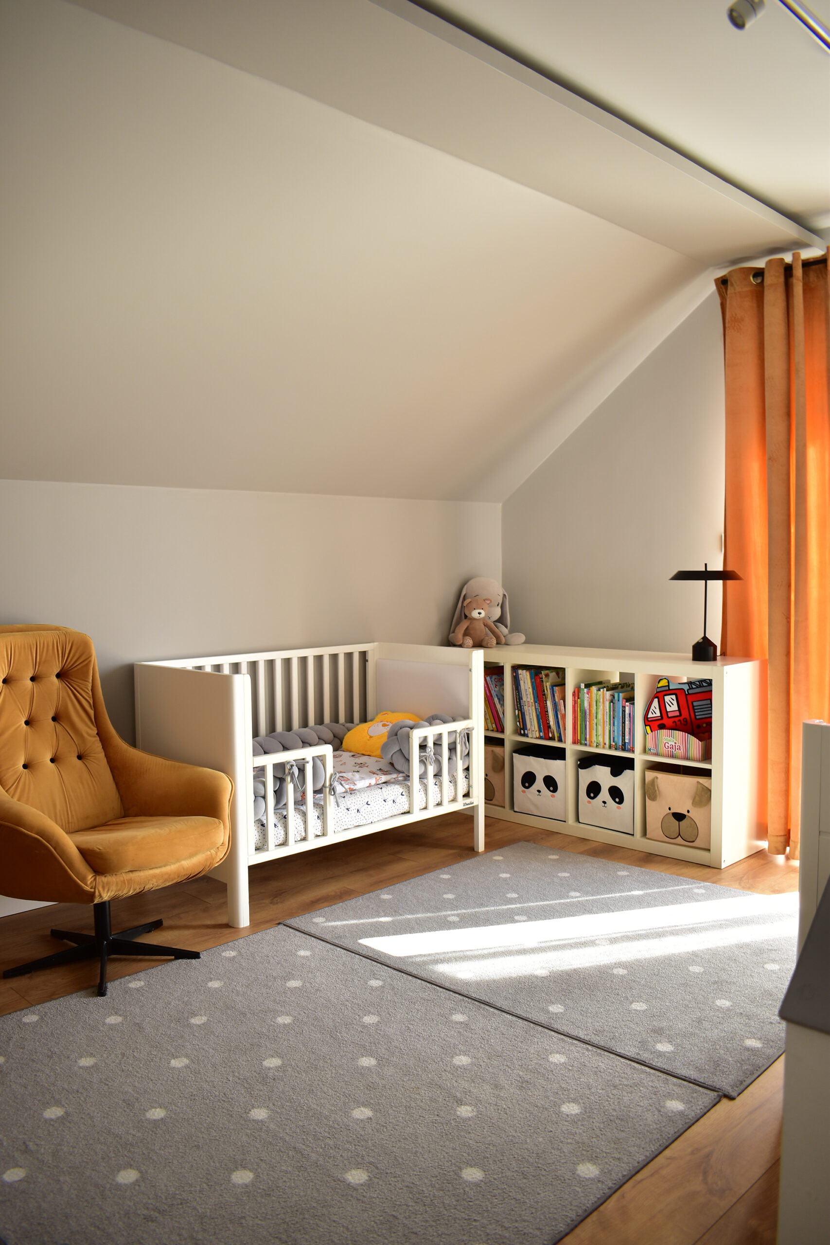 Na piętrze znajdują się 3 w pełni umeblowane sypialnie, gabinet i pojemna garderoba z oknem dachowym. Gabinet można w łatwy sposób prze aranżować na dodatkową sypialnię.